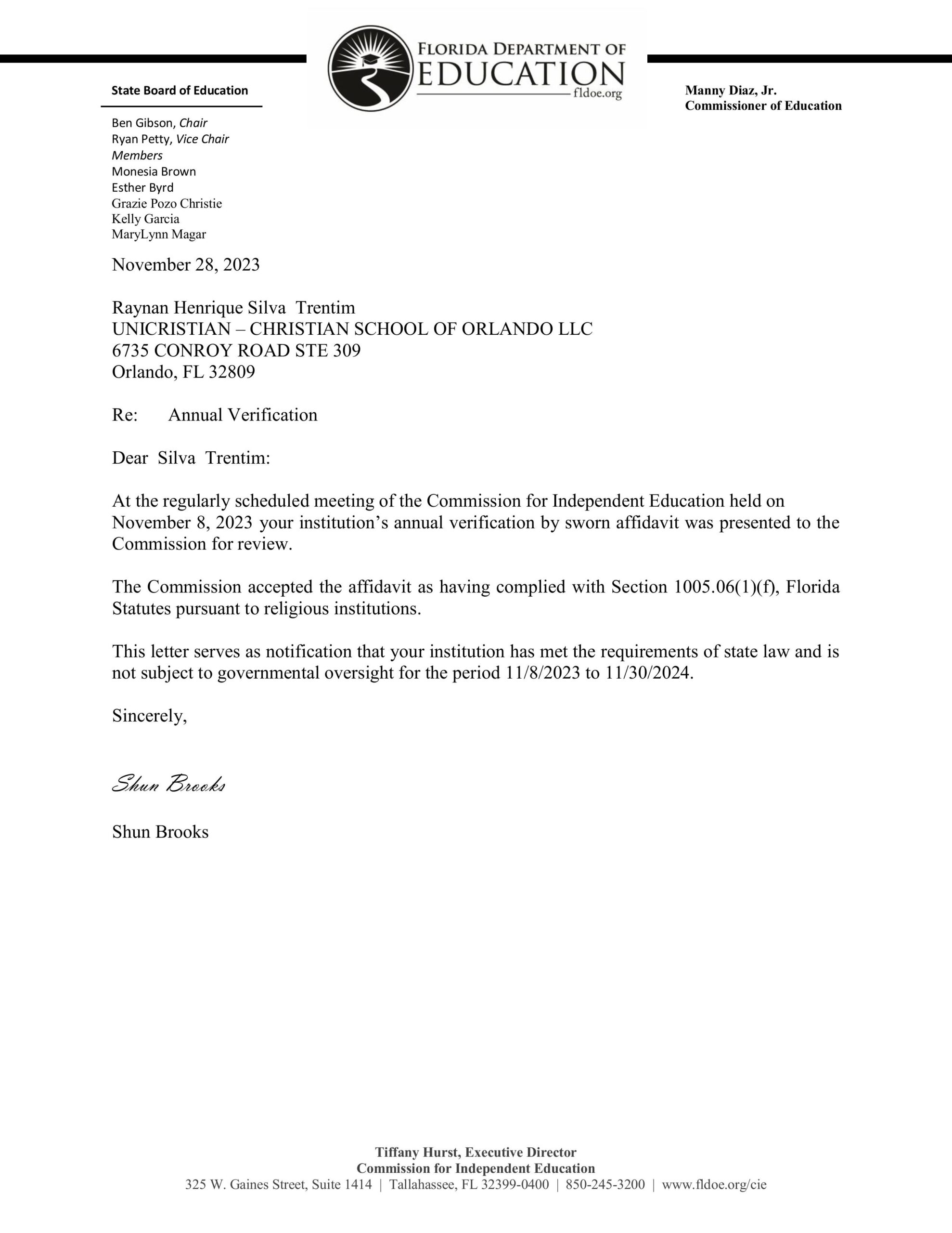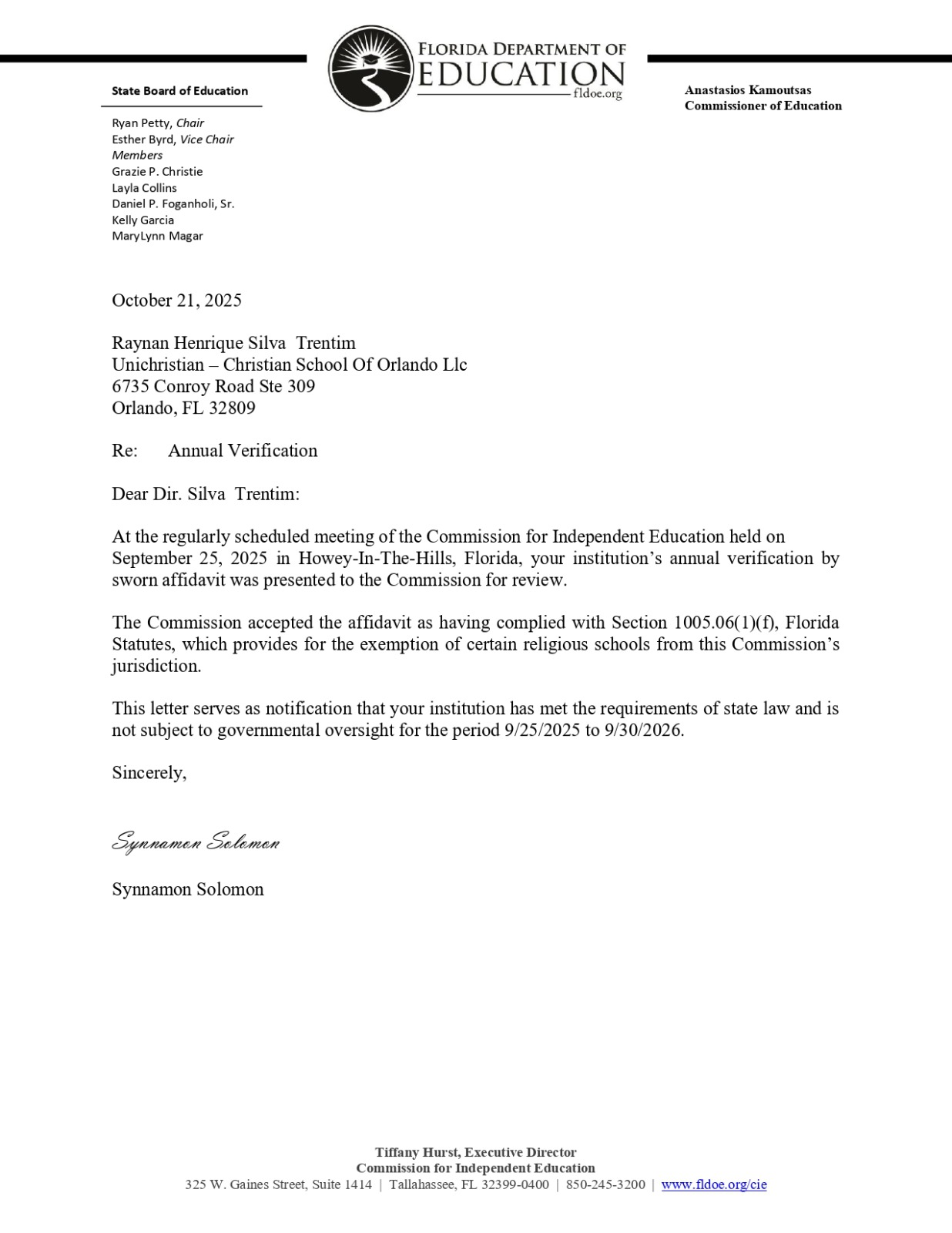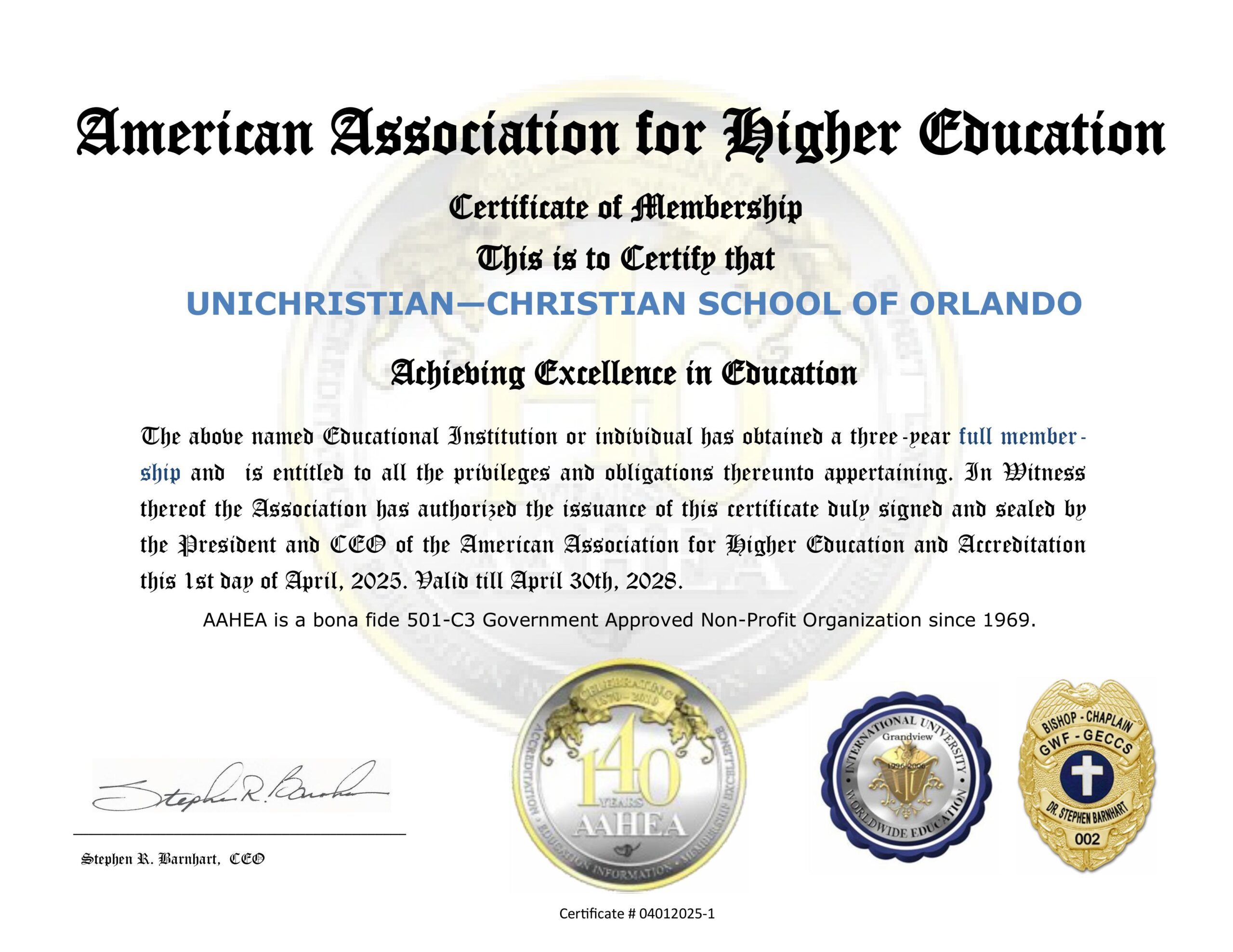 UNICHRISTIAN holds recognition from two prestigious accrediting bodies: